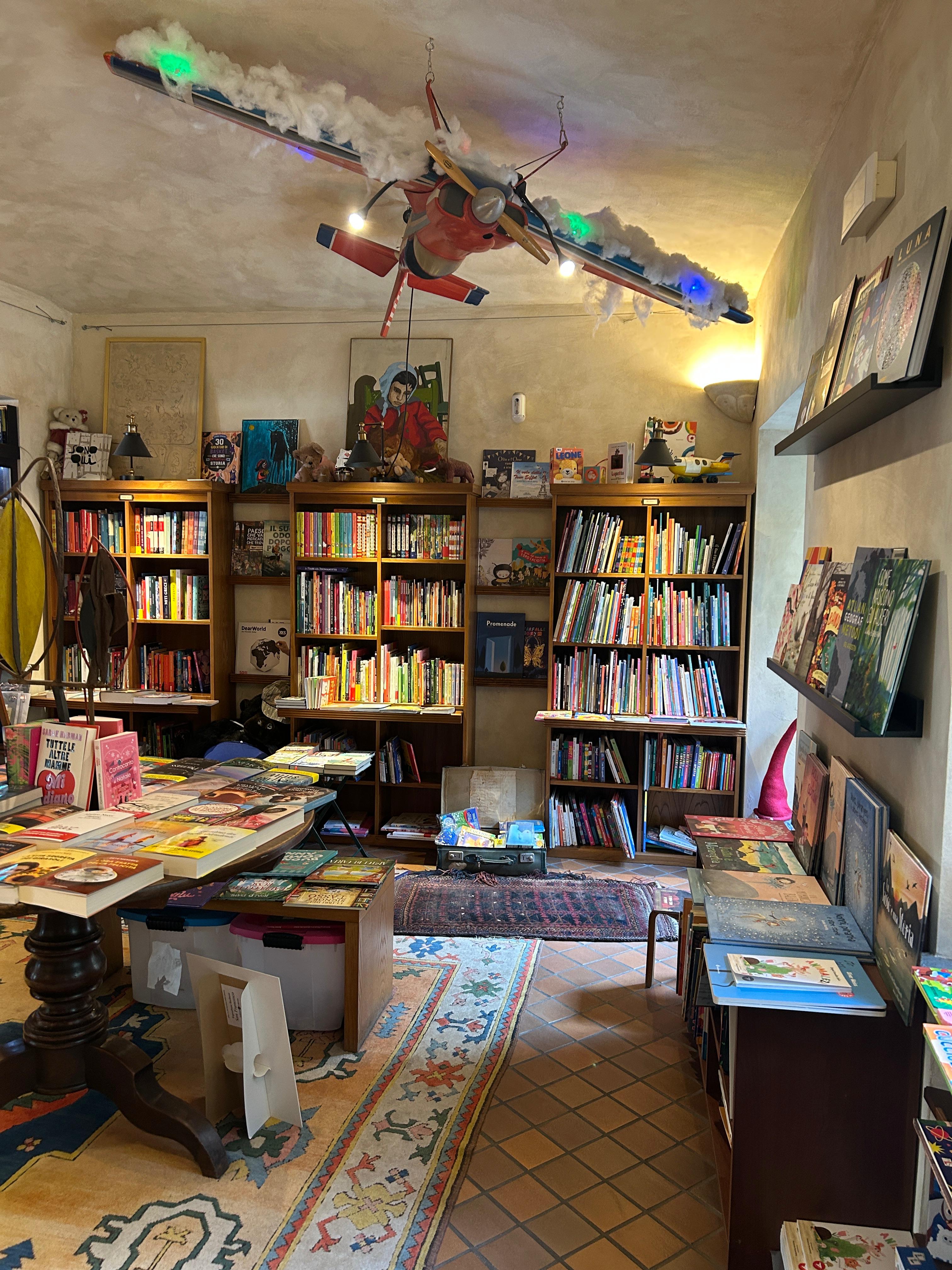 La libreria, divisa in più ambienti ricchi di calore e di arte, offre una ricca scelta di novità e catalogo di narrativa e saggistica di piccoli e grandi editori. E poi un'ampia sezione dedicata ai lettori del futuro (dall'età prescolare agli "young adults"), e ancora libri dedicati all'arte, al design, all'architettura, alla cucina ed un'interessante selezione di volumi dedicati alla spiritualità (dalla filosofia orientale ai tarocchi).